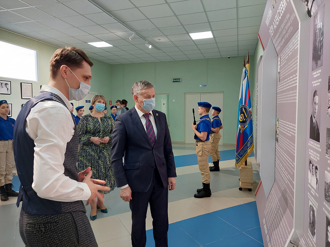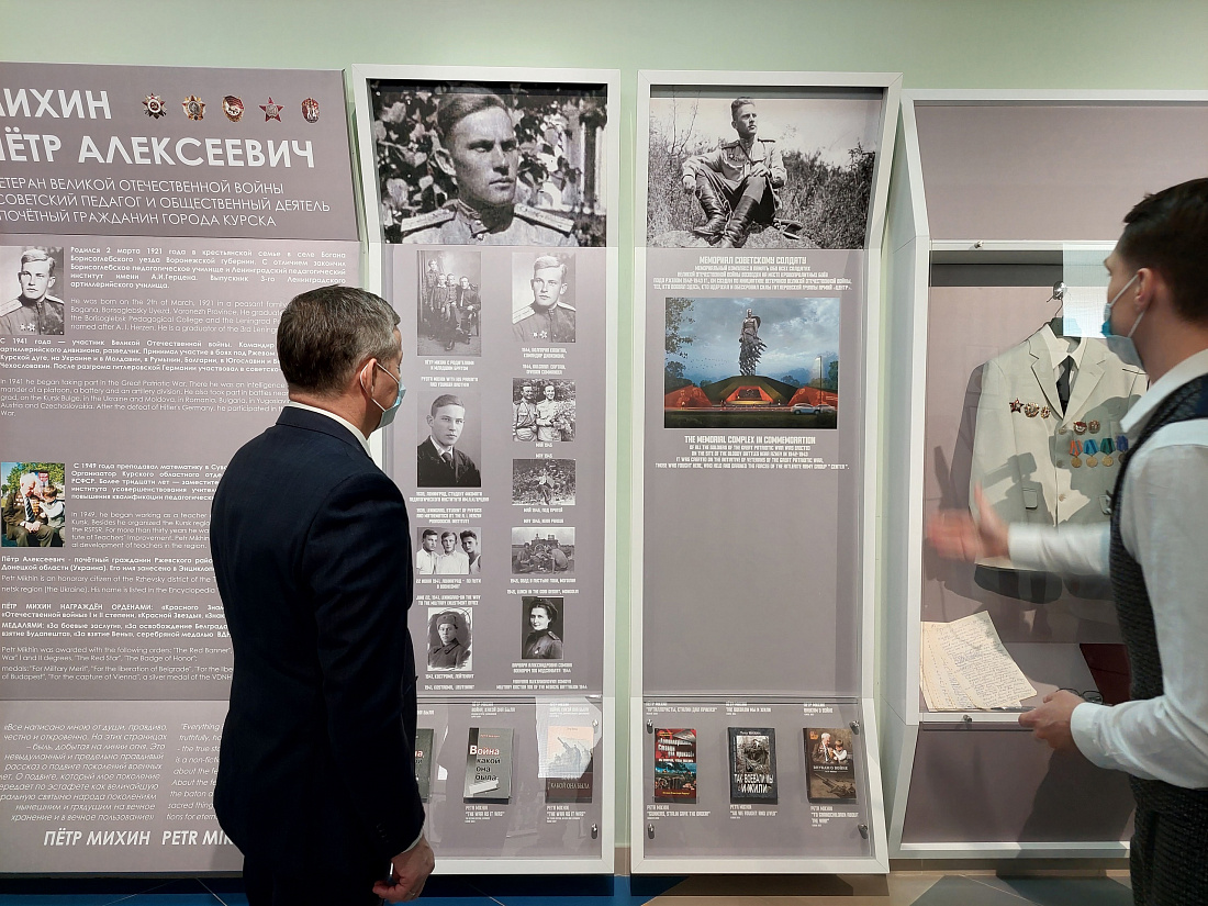 Также замгубернатора осмотрел школьный музей боевой славы «Он был на той войне». Музей был создан в этом учебном году, он посвящён ветерану Великой Отечественной войны Петру Алексеевичу Михину, имя которого носит школа.