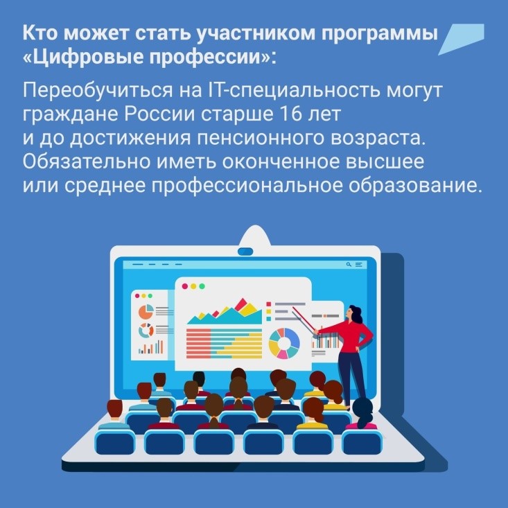 С началом учебного года стартовал проект «Цифровые профессии». Это часть национальной программы «Цифровая экономика» Минцифры, которая позволяет получить ИТ-образование за половину стоимости. 50% оплачивает государство, оставшуюся часть слушатели могут оплатить самостоятельно или за счёт работодателя.