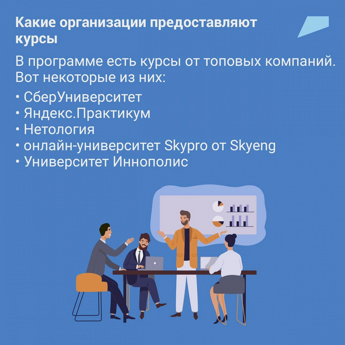 Россиянам доступны около 40 программ, при этом каталог курсов постоянно пополняется. С сентября открыты 29 новых: DataScience, Веб-аналитика, ProductManager, Мобильная разработка, Технологии анализа данных, Тестирование ПО, Технологии искусственного интеллекта, Веб-разработка и другие. Их предоставили Нетология, Яндекс. Практикум, Университет Иннополис, ИТМО, Центр образовательных компетенций НТИ, Инвольта Образование. Новые программы представят также Финансовый университет при Правительстве Российской Федерации, МГТУ им. Н. Э. Баумана, РЭУ им. Г. В. Плеханова и другие.