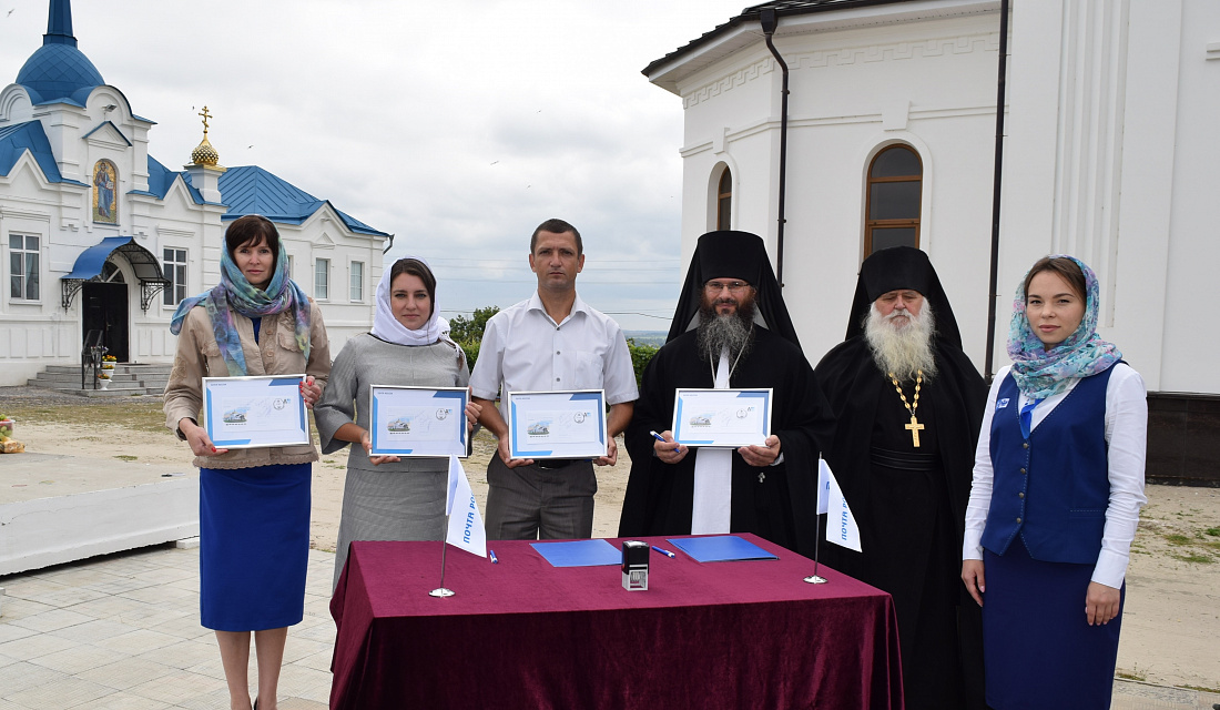 Оттиск специального штемпеля первыми на конверт поставили заместитель директора курского управления «Почты России» Елена Бессонова, референт управления по развитию профессионального искусства, образования, библиотечного дела, народной культуры и взаимодействию с муниципальными органами управления культуры комитета по культуре Курской области Надежда Сидорова, заместитель главы администрации Суджанского района Геннадий Маханьков и настоятель монастыря игумен Питирим (Плаксин).