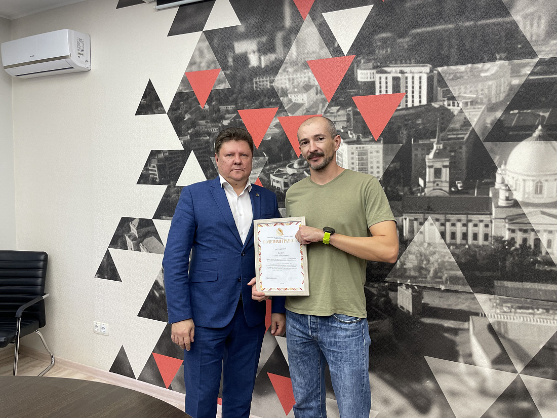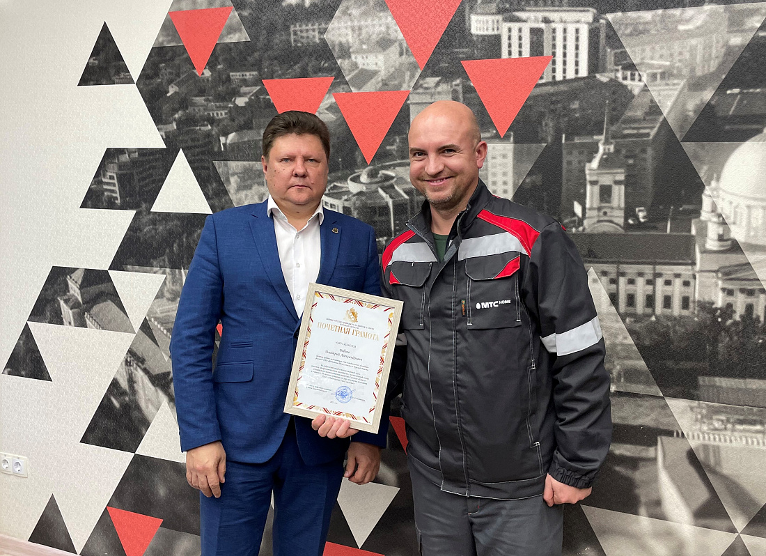 Министр цифрового развития и связи Курской области Сергей Кожевников вручил благодарности областного Министерства инженерам и другим техническим специалистам курского филиала ПАО «МТС». На территории региона компания предоставляет связь и экосистему цифровых сервисов.