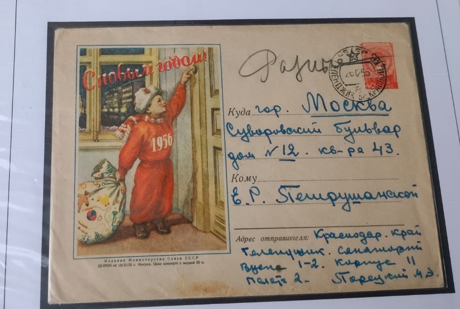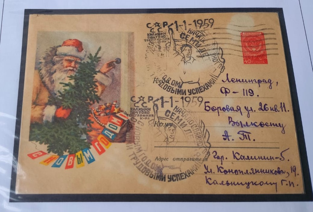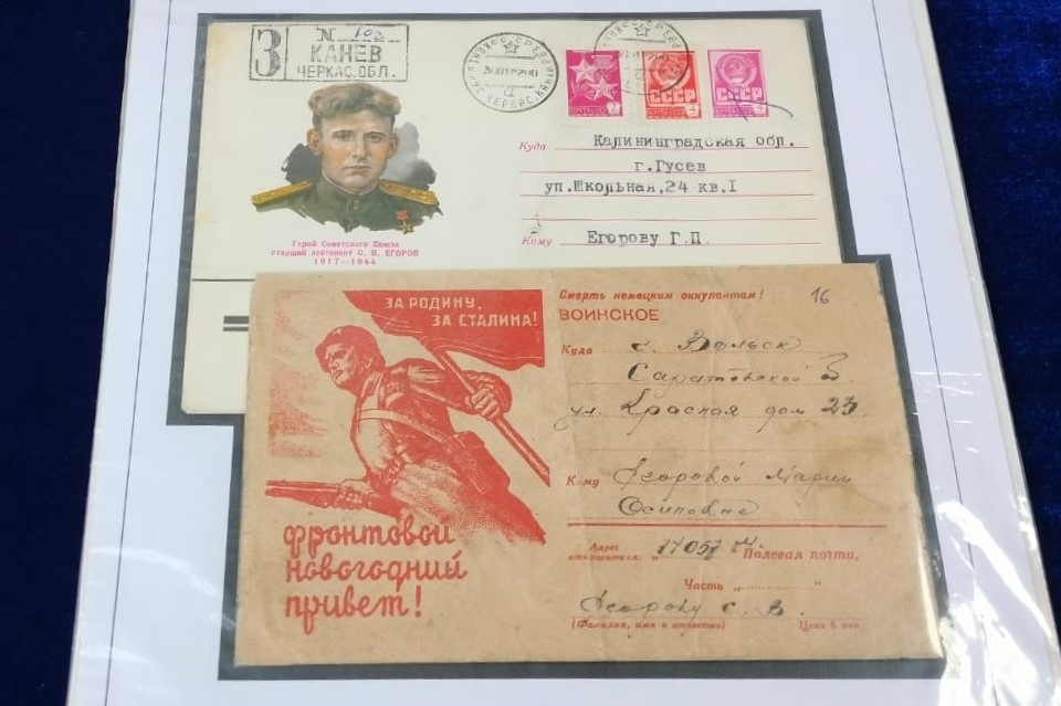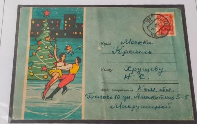 Также посетители увидят уникальный маркированный конверт, адресованный в Московский Кремль первому секретарю ЦК КПСС Н.С. Хрущёву перед новым 1963 годом из Кемеровской области. И ещё — почтовое отправление героя Советского Союза С.В. Егорова своей матери от 1943 года. На нём — советский солдат с развевающимся знаменем в руках и надписью «фронтовой новогодний привет». Здесь же конверт уже послевоенного периода, посвящённый самому герою.