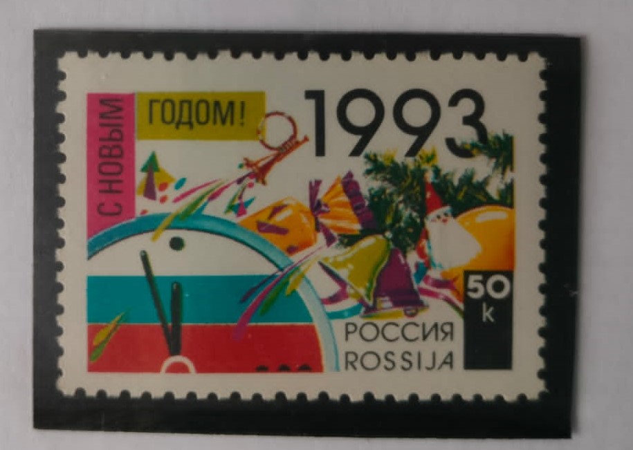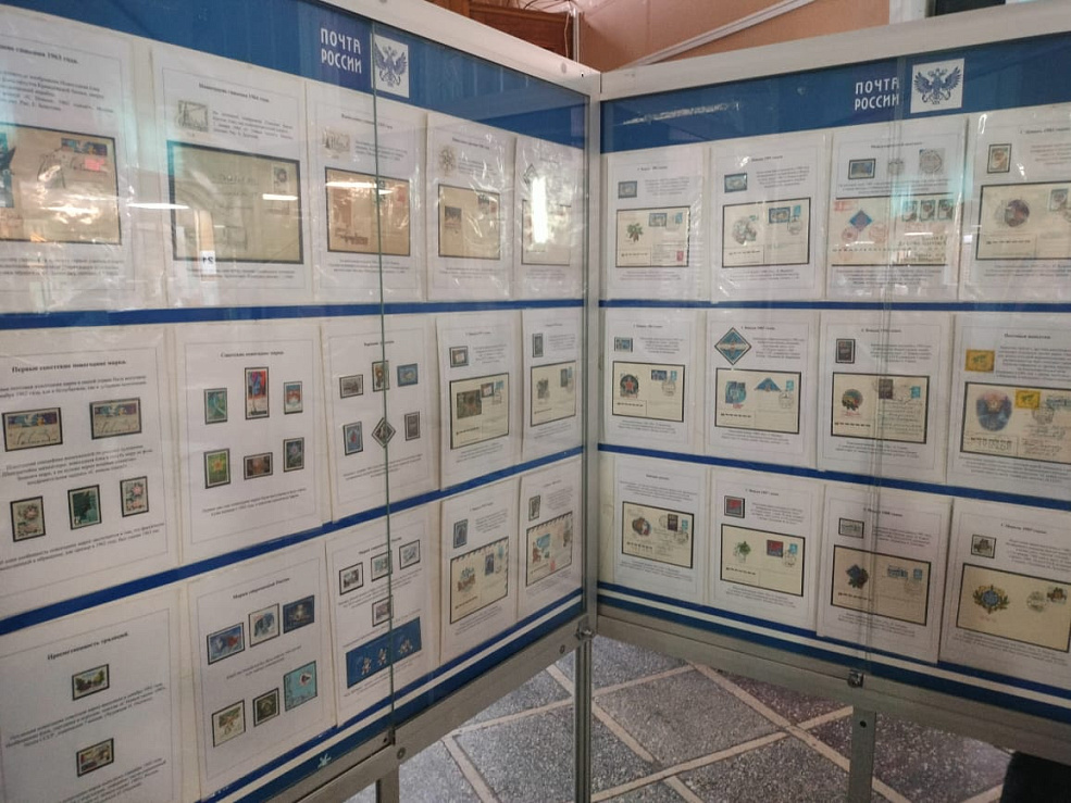 На выставке много интересных экспонатов, в том числе первая новогодняя советская почтовая марка от 1963 года с изображением голубя мира на фоне Земного шара, а также первая новогодняя марка современной России, на которой еловая ветвь с игрушками, циферблат часов с цветами флага Российской Федерации.