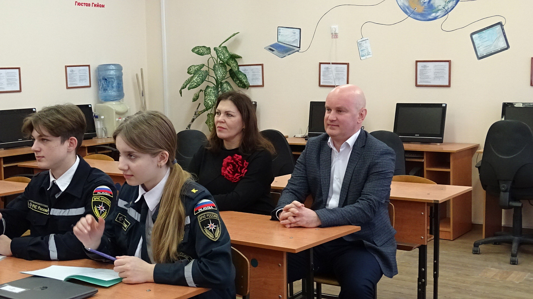 На урок к школьникам приехал заместитель министра цифрового развития и связи Курской области Андрей Авилов.