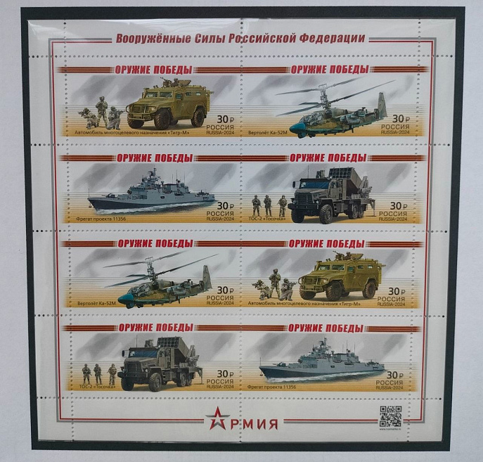 Большое место в экспозиции занимает современная тематическая филателия. Это марки с изображением государственных наград Российской Федерации, военной техники, героев СВО, памятников и памятных мест нашего региона. Завершает выставку марочный блок 2009 года, посвященный городам воинской славы: Курску, Белгороду, Орлу, Полярному и Ржеву.