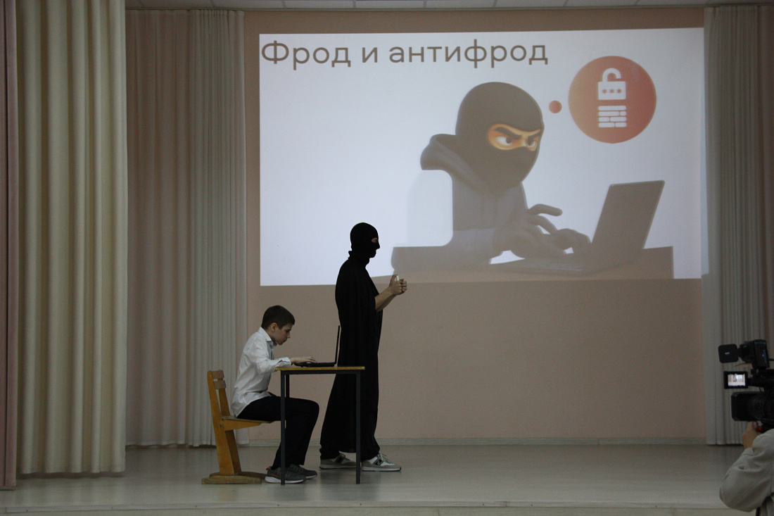 Урок был посвящен борьбе с фишингом и другими угрозами. Старшеклассники в театрализованной форме рассказали ученикам 5-го класса о таких профессиях, как антифрод-детектив, антифрод-аналитик, менеджер продукта, ML-инженер, а также о технологиях, которые обеспечивают защиту пользователей в интернете.